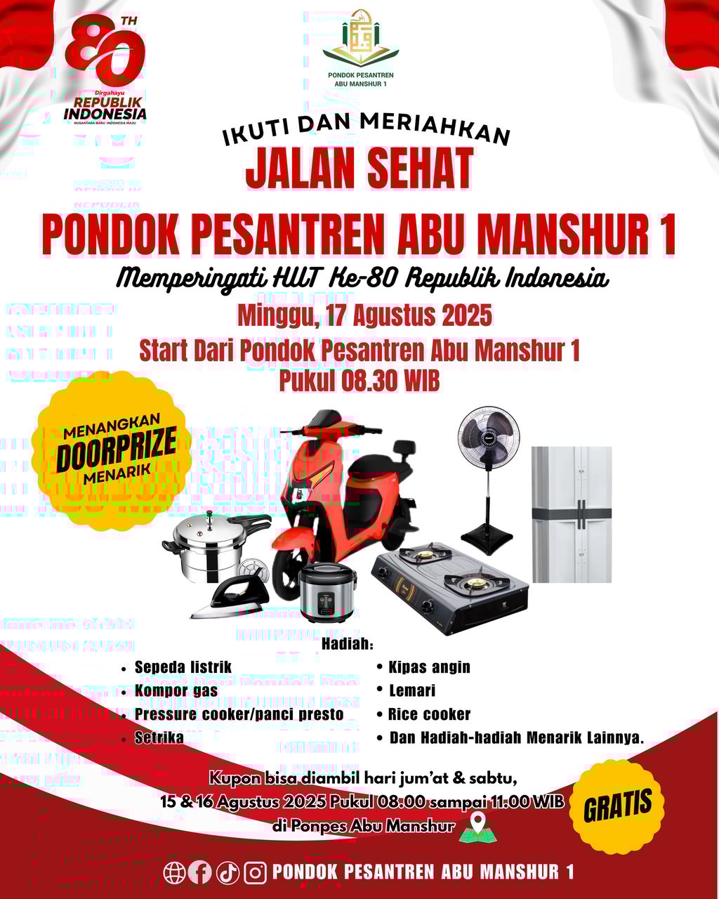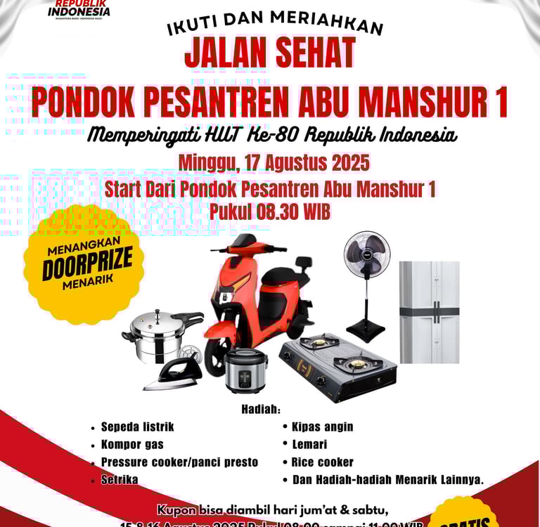 Hadiah : Sepeda Listrik, Kompor Gas, Panci Presto, Setrika, Kipas Angin, Lemari, Rice Cooker, dan masih banyak yang laiinya...