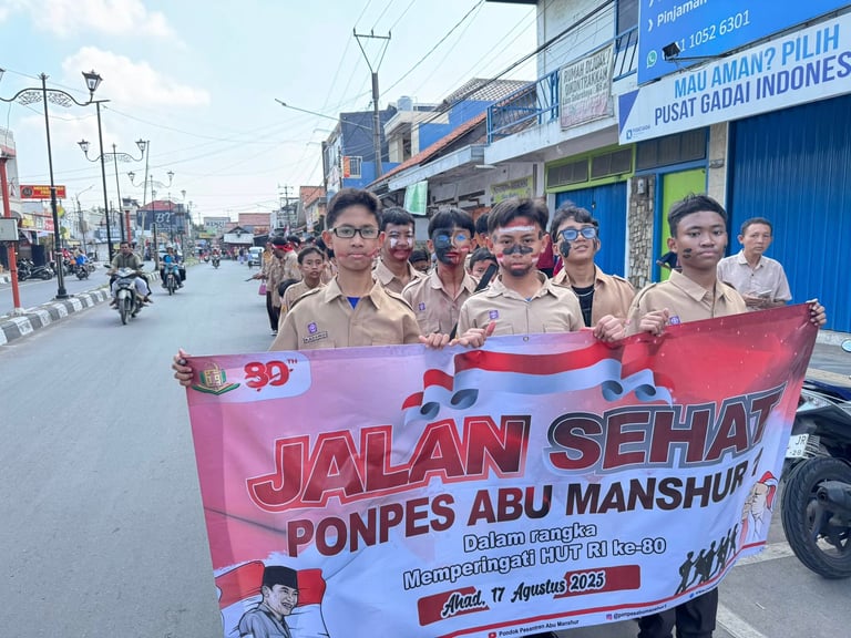 Ahad, 17 Agustus 2025, Ponpes Abu Manshur 1 kembali mengadakan kegiatan jalan sehat berhadiah. Sebagaimana tahun-tahun sebelumnya, jalan sehat HUT RI ke 80 ini dilaksanakan langsung setelah upacara pengibaran bendera di Ponpes Abu Manshur. Sekitar 1500 peserta jalan sehat memadati gang-gang di depan Ponpes Abu Manshur menuju desa Trusmi dan kemudian kembali lagi ke Ponpes Abu Manshur. Kegiatan ini dilaksanakan untuk menyemarakkan ulangtahun kemerdekaan Republik Indonesia sekaligus menjadi perekat berbaurnya para santri dengan warga sekitar Pondok. Hadiah utama Jalan sehat Ponpes Abu Manshur 1 tahun 2025 ini berupa 1 unit sepeda listrik, kompor gas, lemari, dispenser, panci presto, setrika dan puluhan hadiah menarik lainnya.