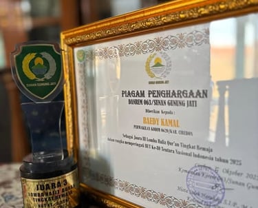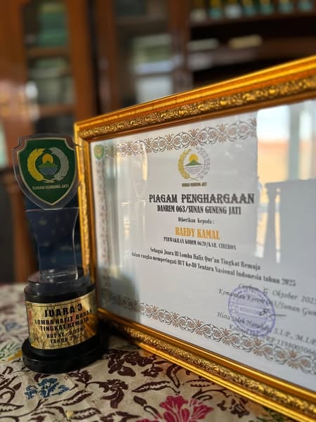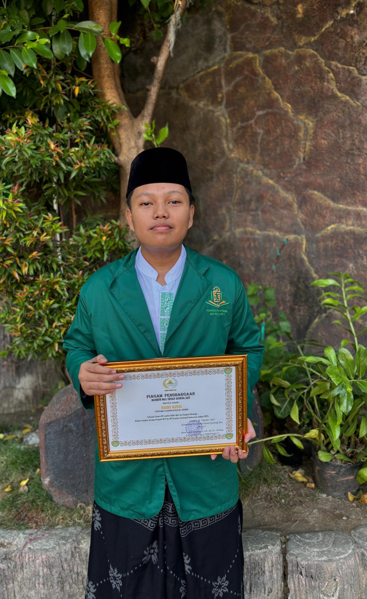 Alhamdulillah santri Ponpes Abu Manshur 1 kembali meraih prestasi dalam hafalan Al-Quran. Kali ini santri Ponpes Abu Manshur 1 atas nama Readi Kamal dari Purwokerto Banyumas Jawa Tengah berhasil meraih juara 3 dalam lomba hafalan Al Quran tingkat Wilayah 3 & 4 Provinsi Jawa Barat yang diselenggarakan oleh Komando Resor Militer Sunan Gunung Jati Cirebon.