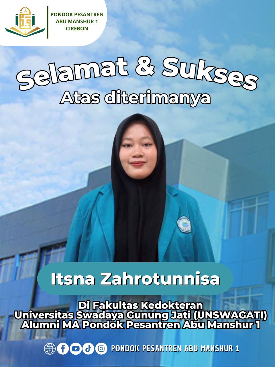 Itsna Zahrotunnisa mengeyam pendidikan di Pondok Pesantren Abu Manshur selama 6 tahun, dari awal masuk ke jenjang SMP kemudian melanjutkan ke jenjang MA, Itsna termasuk santri yang rajin terutama dalam menghapal Al-Qur’an, cita-citanya yang ingin menjadi dokter selangkah lagi akan terwujud.