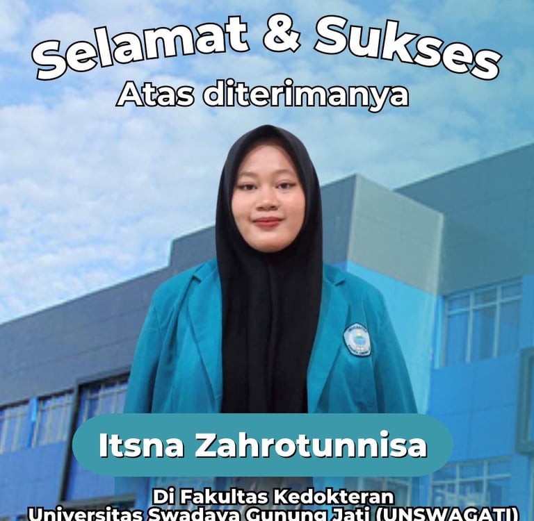 "Selamat dan sukses atas diterimanya Itsna Zahrotunnisa di Falkutas Kedokteran, Semoga ilmu yang didapat kelak dapat membawa manfaat luas bagi masyarakat dan menjadi inspirasi bagi sesama."
