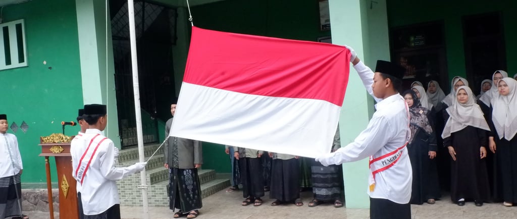 Cirebon - Upacara peringatan Hari Santri Nasional (HSN) 2025 digelar dengan suasana penuh khidmat di Lapangan Pondok Pesantren Abu Manshur Cirebon, Rabu (22/10).