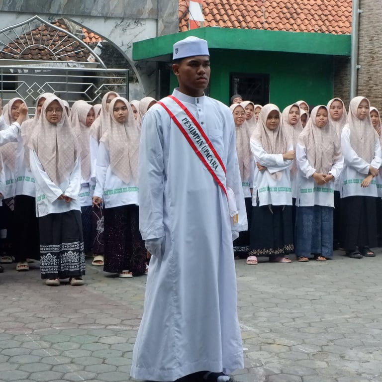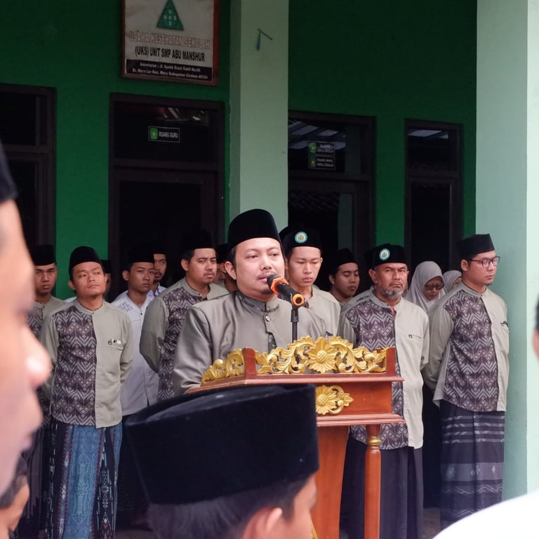 Upacara yang digelar secara meriah namun penuh makna ini dipimpin langsung oleh pimpinan Pondok Pesantren Abu manshur, KH. Moh. Alimudin, Lc., M.Pd. sekaligus menyampaikan amanah.